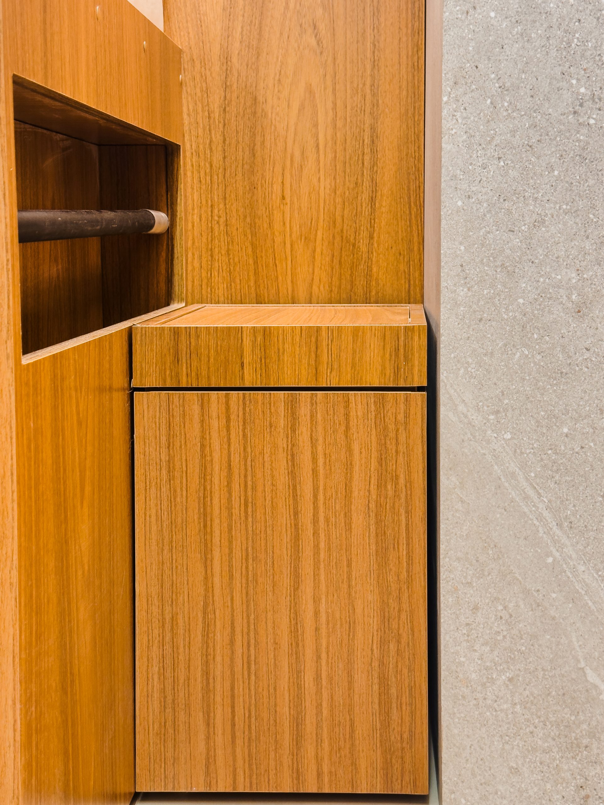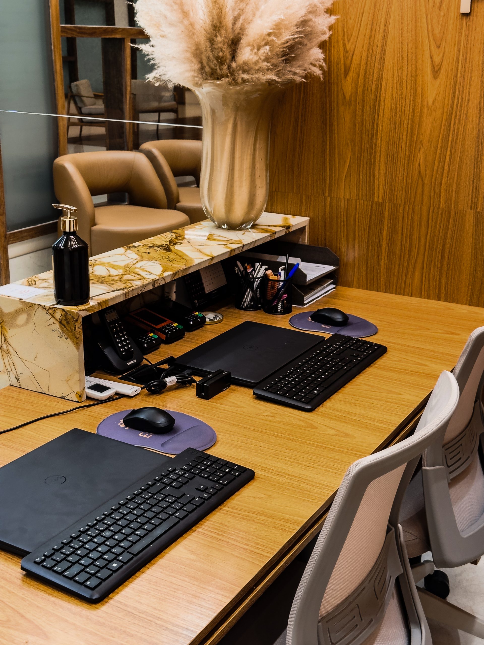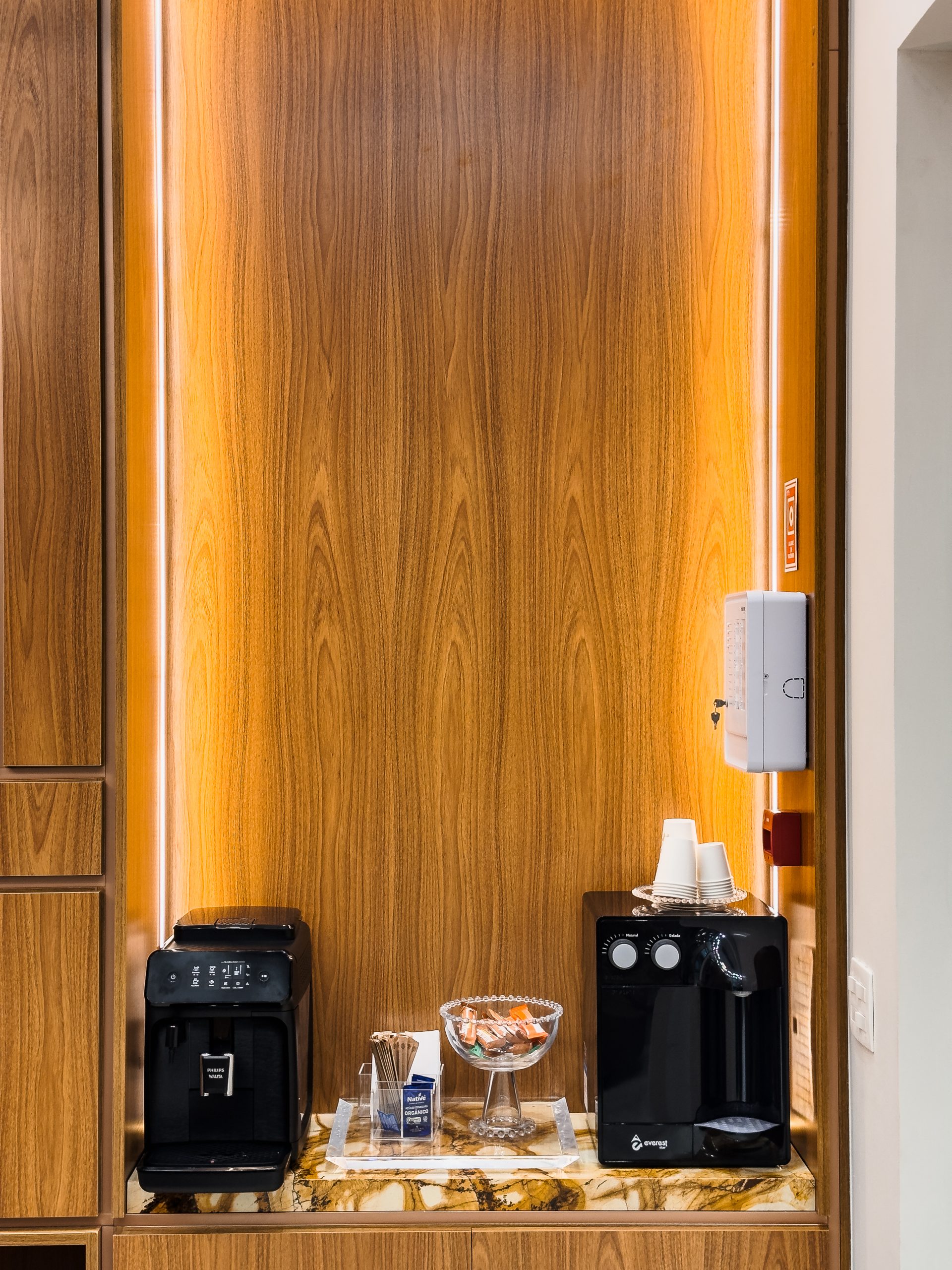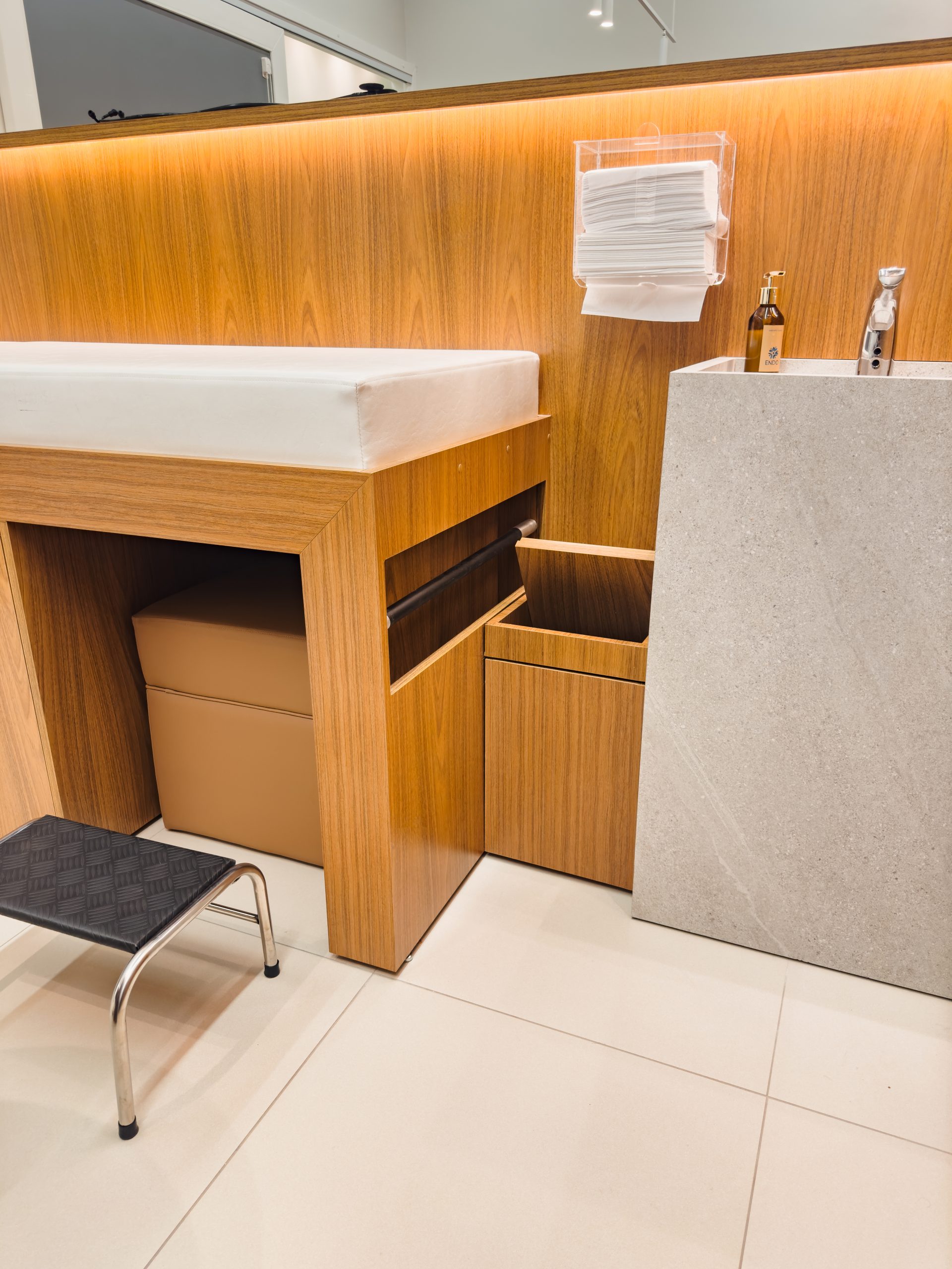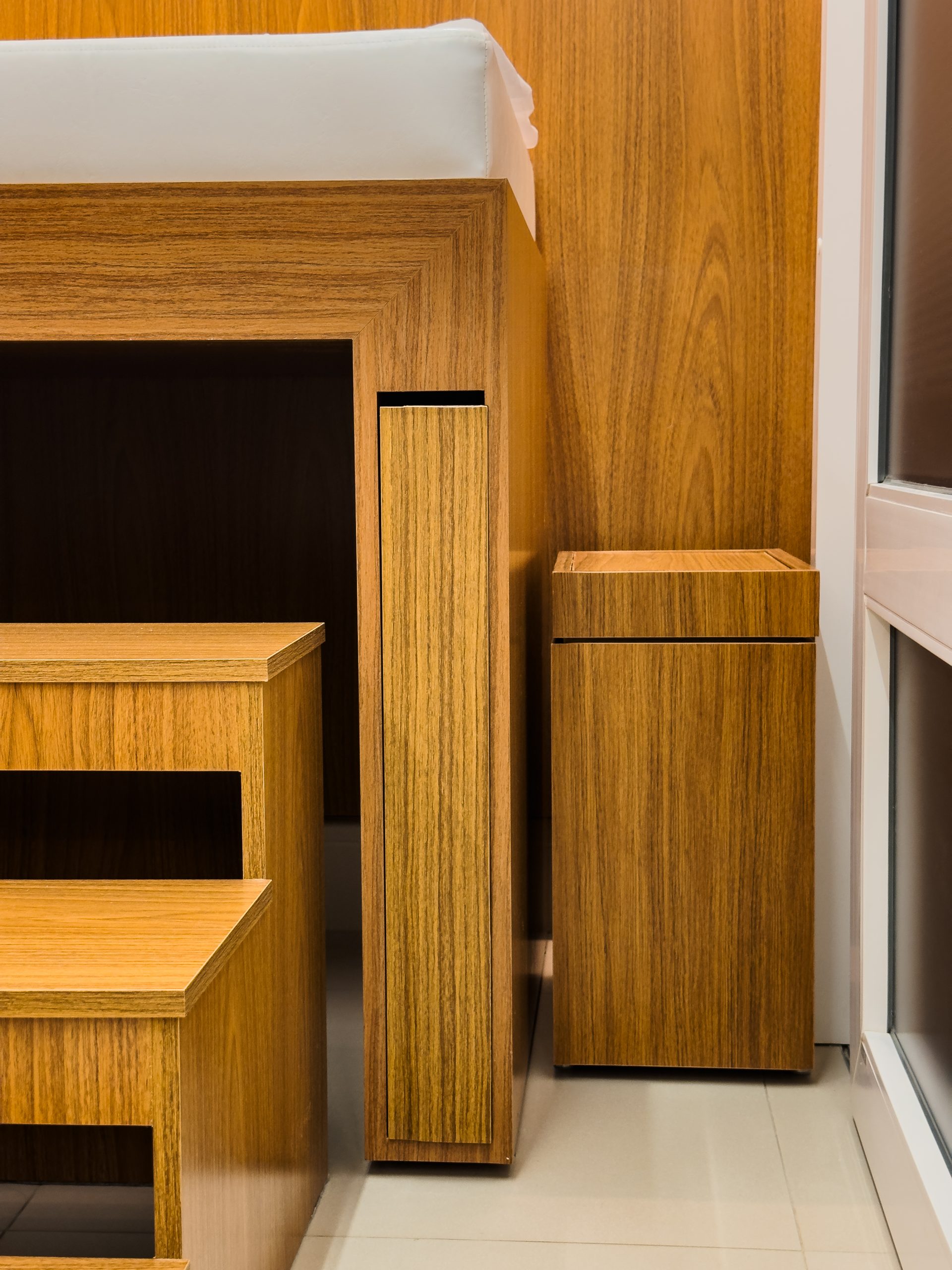 O Painel Integrado Áureo destaca como os móveis planejados transformam a recepção e o consultório em ambientes acolhedores, funcionais e sofisticados. A marcenaria em madeira envolve todo o espaço, criando continuidade visual e integrando nichos, portas camufladas e áreas de apoio com perfeição. A iluminação embutida valoriza os veios da madeira e reforça o tom elegante que acompanha o atendimento desde o primeiro contato.